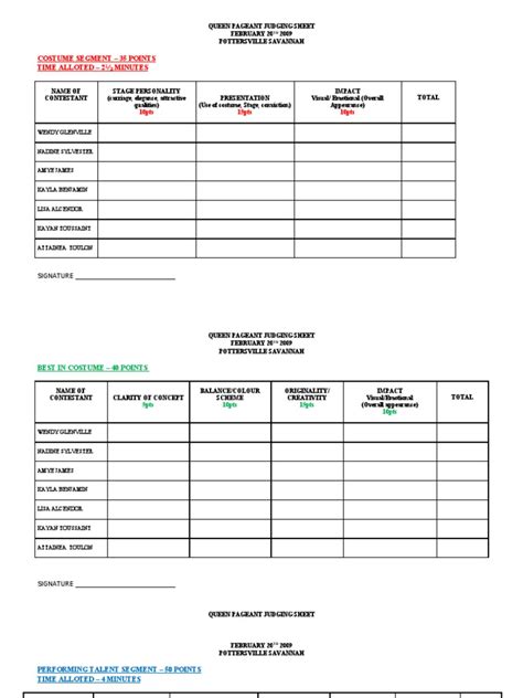 Read Online judging forms for pageants Epub